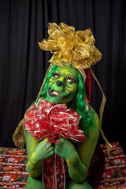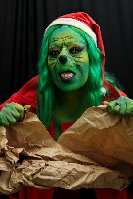 Grinch printables are versatile tools for enhancing holiday celebrations. They can be used for decorations, party themes, and DIY crafts, adding a festive touch to homes and events. Printable gift tags, wrappers, and cards are perfect for personalizing presents. Additionally, Grinch-themed activities, such as coloring pages and puzzles, keep kids entertained while fostering creativity. These printables also serve as educational resources, teaching storytelling and creativity. Overall, they offer a fun and engaging way to incorporate the Grinch’s whimsical spirit into holiday traditions and family activities.